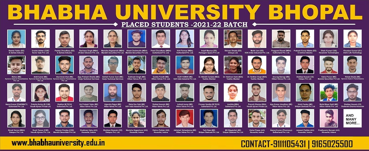 We are a renowned educational group in central India established in 2003. Now BHABHA Group of Institutions has become "BHABHA UNIVERSITY”. Established by the Act of Madhya Pradesh Legislature and is notified in the Official Gazette of the State Government.