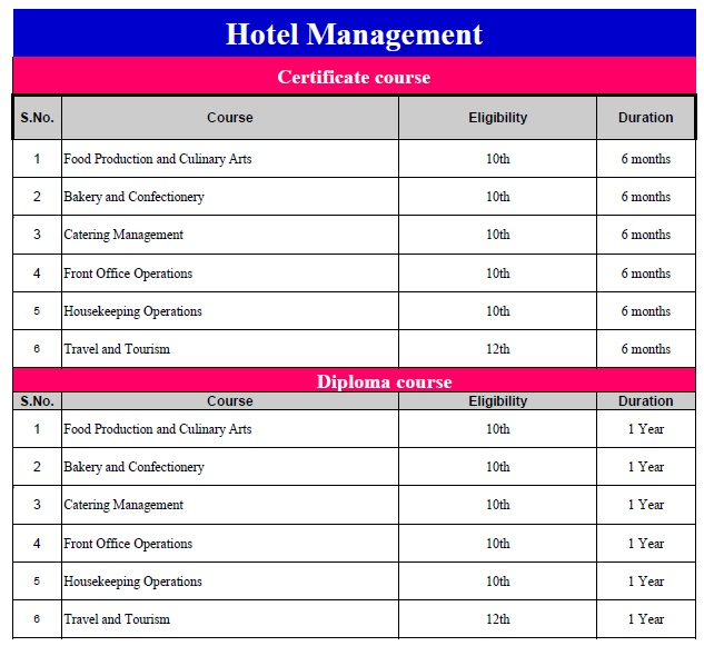 Vocational Courses-Hotel Management